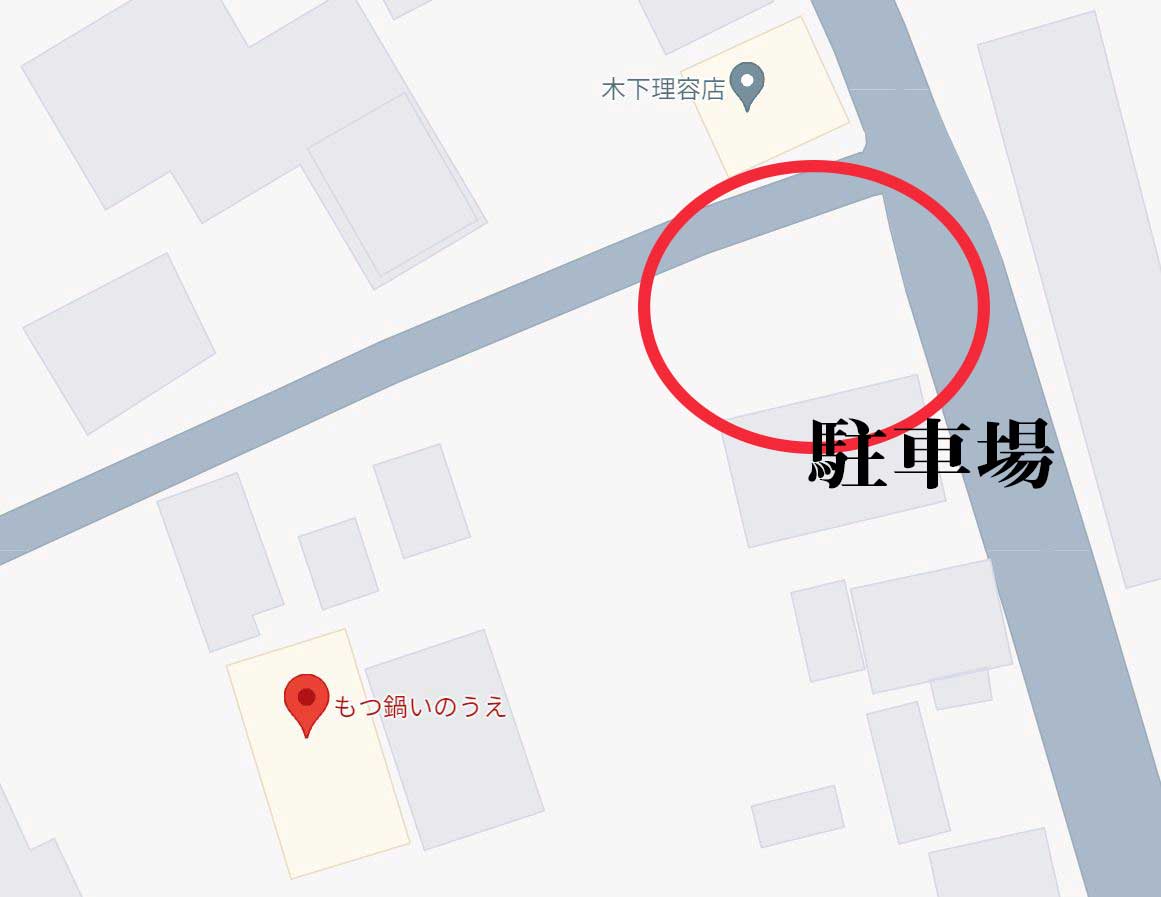 あり(2箇所) 1.店舗の隣に軽自動車専用として2台分のスペース 2.店舗から10mほどの距離にある敷地(以下の地図を参照) 駐車場の場所 |